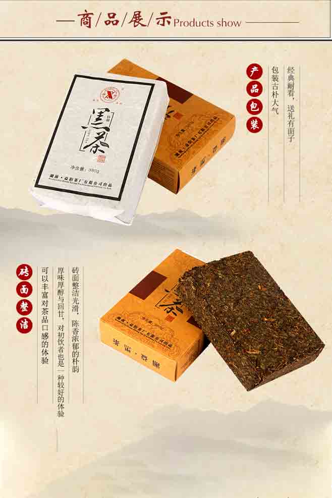 益陽茶廠是全國茯磚茶生產(chǎn)廠家和茯磚茶原料儲(chǔ)備承儲(chǔ)企業(yè),創(chuàng)建于1953年,“湘益”素有“古絲綢之路上的神秘之茶”、“西北少數(shù)民族的生命之茶”的美譽(yù),其“茯磚茶手筑工藝”已被列入國家級(jí)非物質(zhì)文化遺產(chǎn)保護(hù)名錄。 ??“湘益”茯茶均采用優(yōu)質(zhì)黑毛茶為原料,經(jīng)篩分投入拼配篩制—汽蒸渥堆—壓制定型—發(fā)花—干燥出烘—包裝入庫等工序精制而成,茶葉金花普茂,湯色紅濃,滋味醇厚,具有明顯的調(diào)節(jié)新陳代謝、降脂降糖功效。