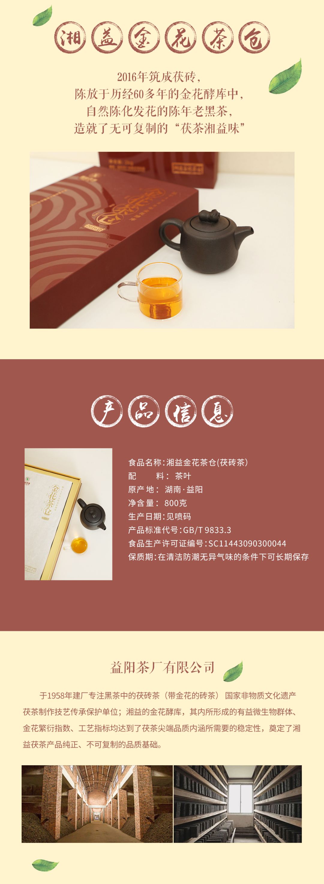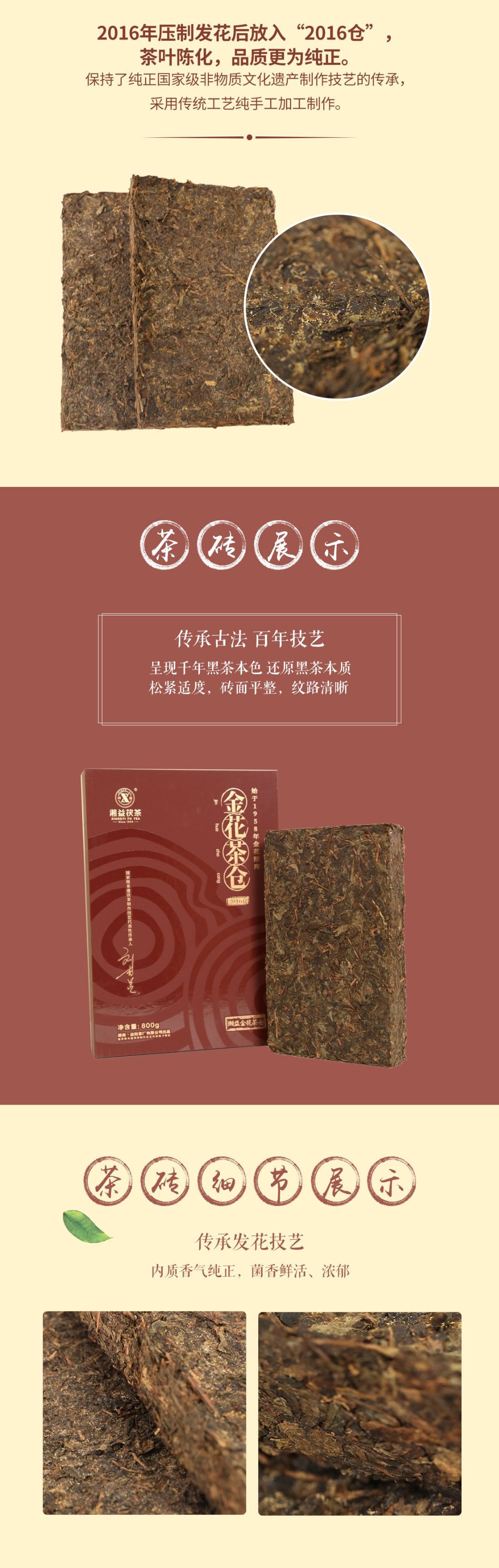 湘益金花茶倉2016茯磚茶800g